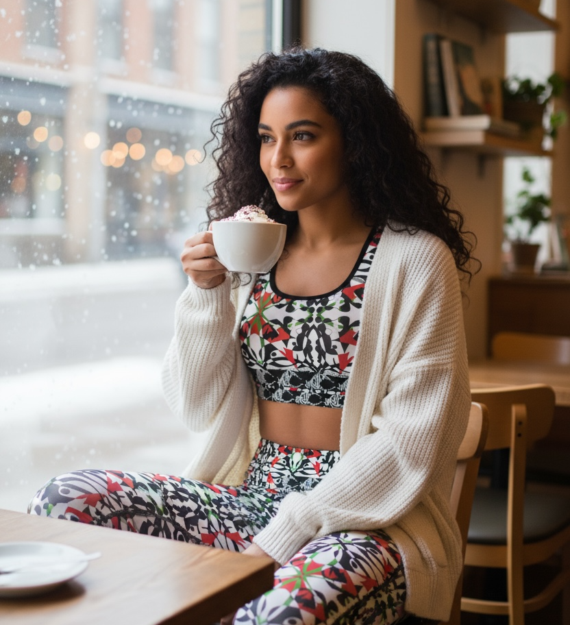 These yoga capri leggings with a high, elastic waistband are the perfect choice for yoga, the gym, or simply a comfortable evening at home. Complete with your Holiday BYM Gnomes - to keep your festivity energy afloat!